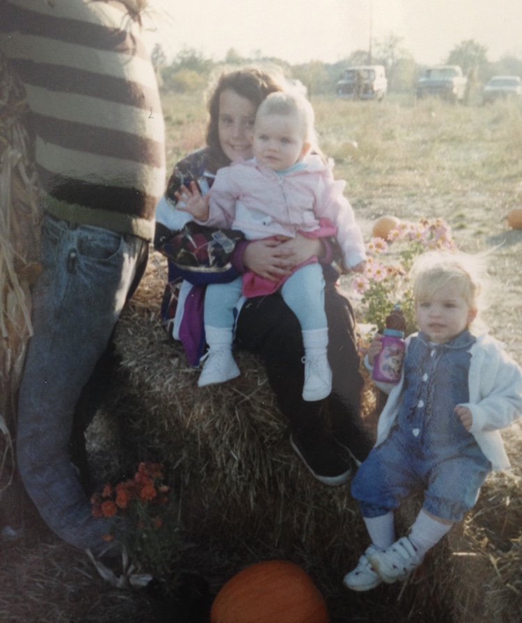 Displayed here is a photo of Alicia with siblings, pumpkin picking, holding onto myself (Rachel) and sitting to the far right we have the lovely sister, Dallas. So much love.